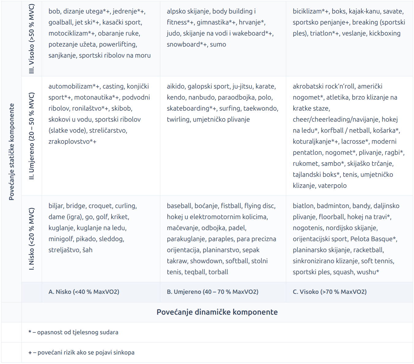 - Klasifikacija sportova po statičkom i dinamičkom opterećenju.